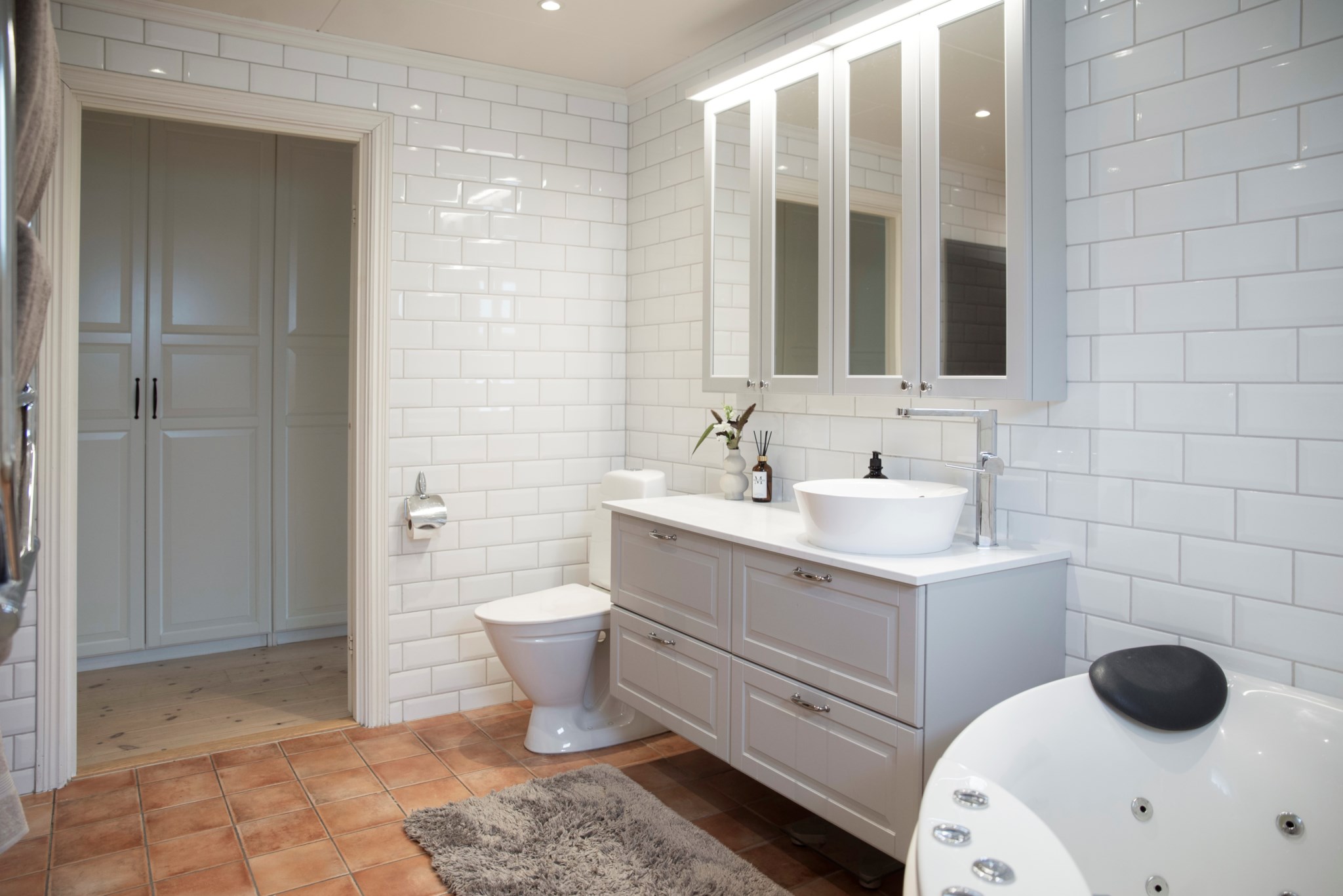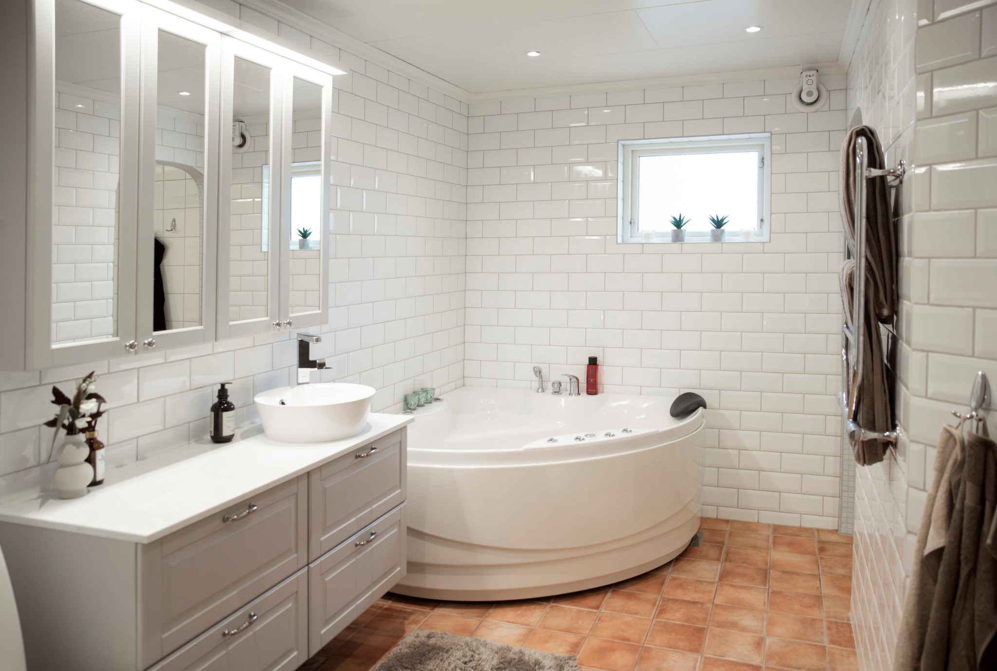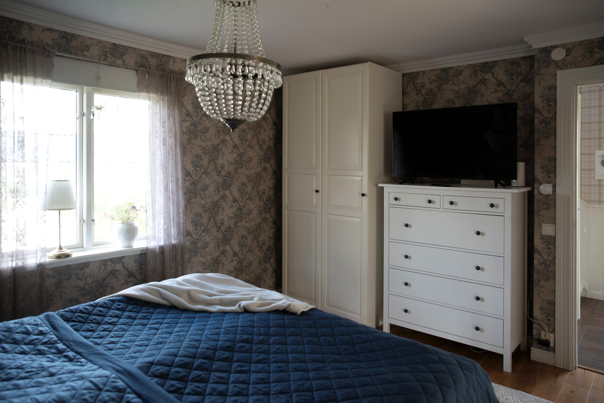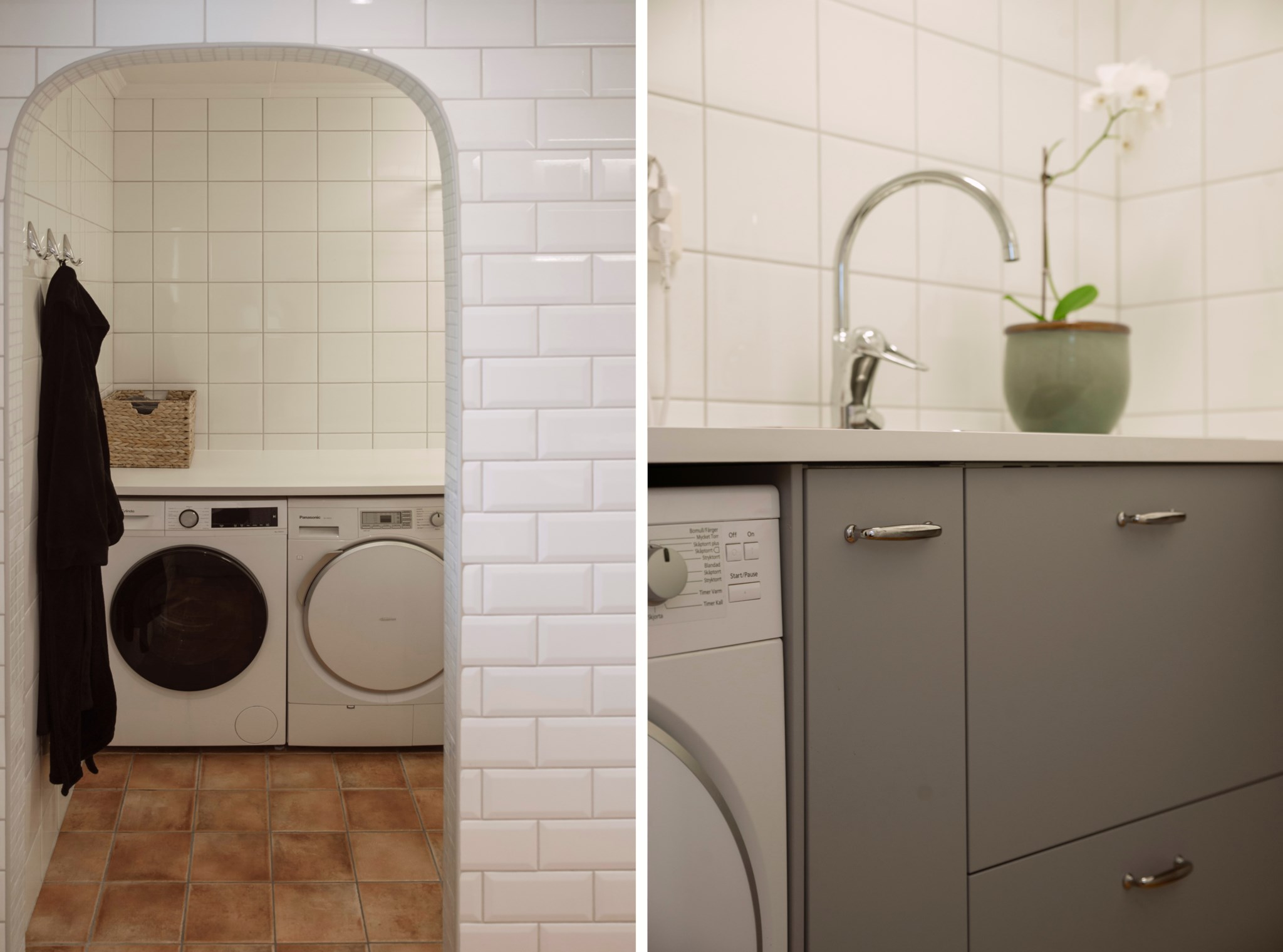 På samma plan finns ett rofyllt sovrum med plats för dubbelsäng, ett helkaklat badrum samt praktisk tvättstuga med gott om förvaring.