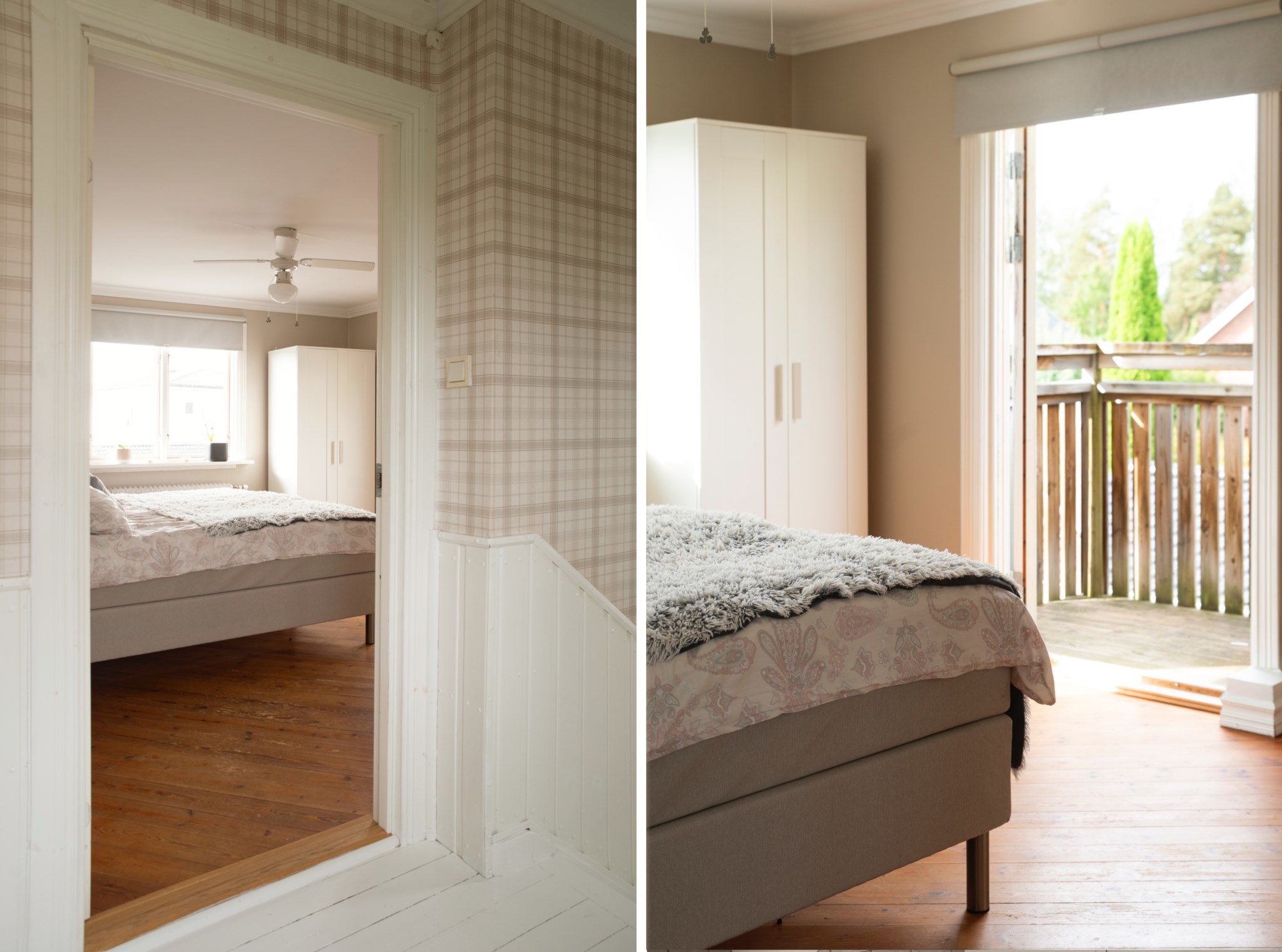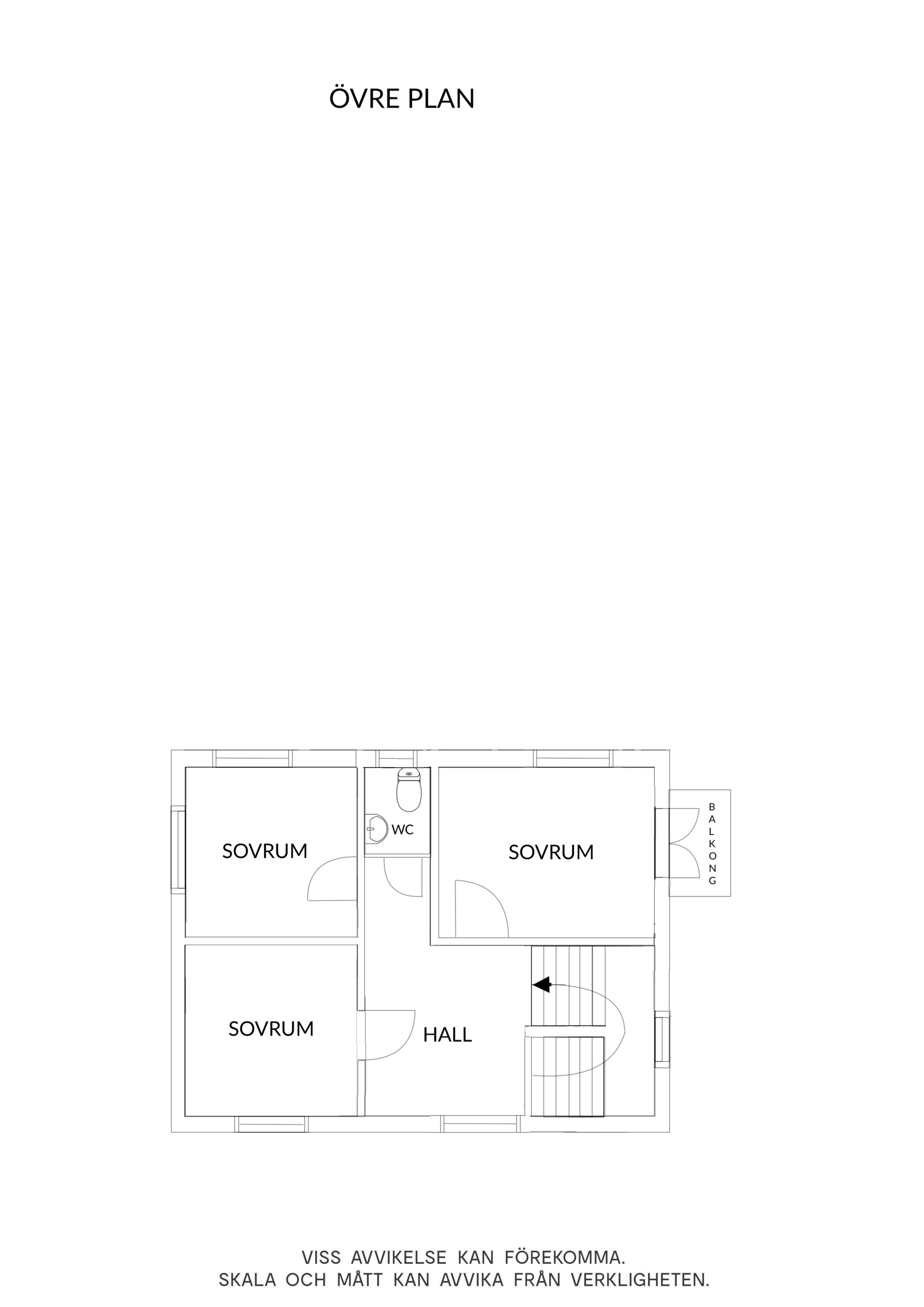 Övervåningen rymmer tre rymliga sovrum med fint ljusinsläpp och ett av rummen har utgång till en mindre balkong – perfekt för morgonkaffet eller frisk luft. Här finns även en WC.
