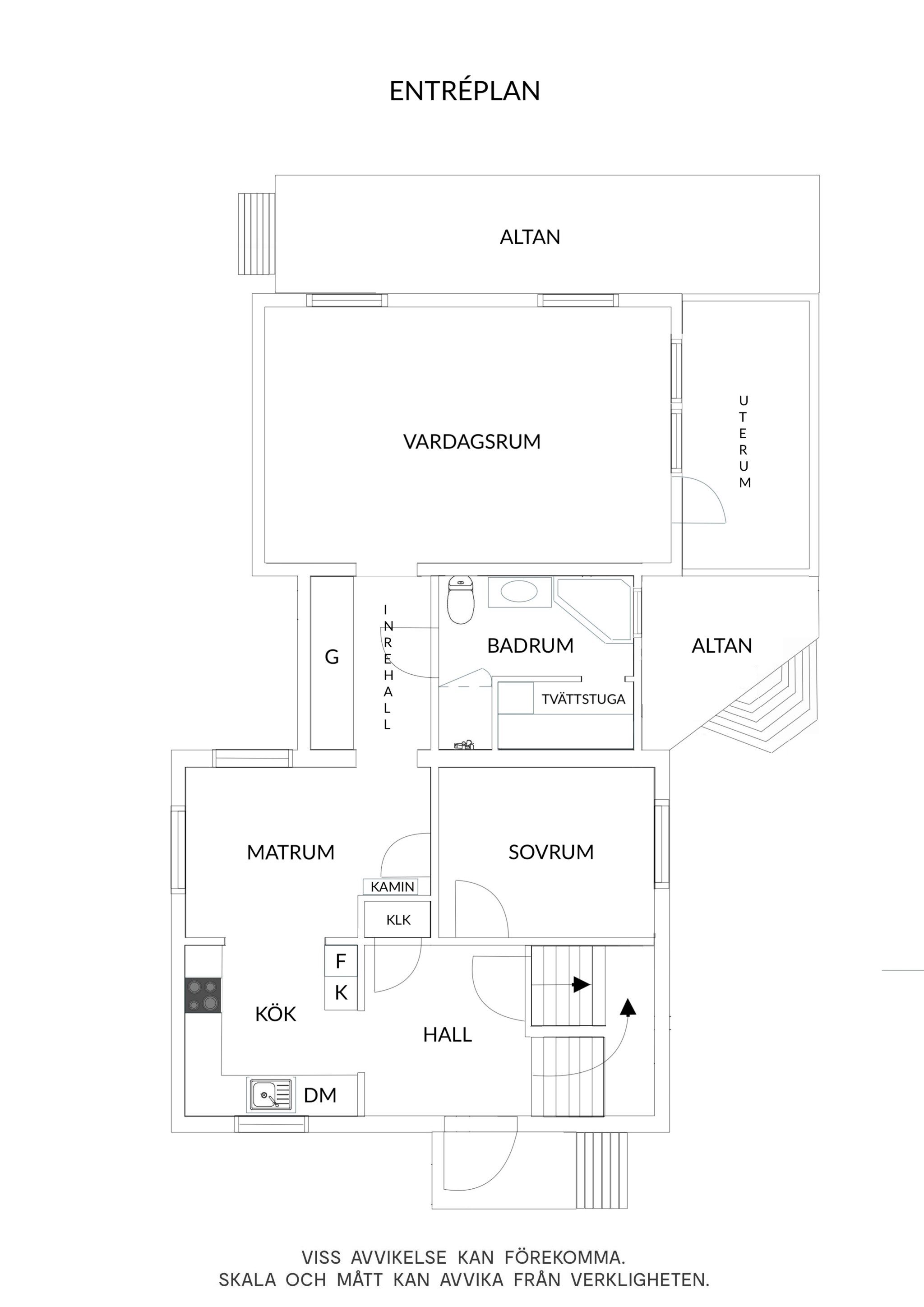 På entréplanet möts du av ett stilfullt kök med god förvaring, och intill ligger ett inbjudande matrum med plats för långa middagar vid brasan. Det stora vardagsrummet i tillbyggnaden är husets hjärta – en ljus och generös yta med fönster i två väderstreck, naturlig kontakt med trädgården och direkt anslutning till ett mysigt uterum som förlänger säsongen från tidig vår till sen höst. Här finns plats för både soffhörna, matsalsbord och läsplats.