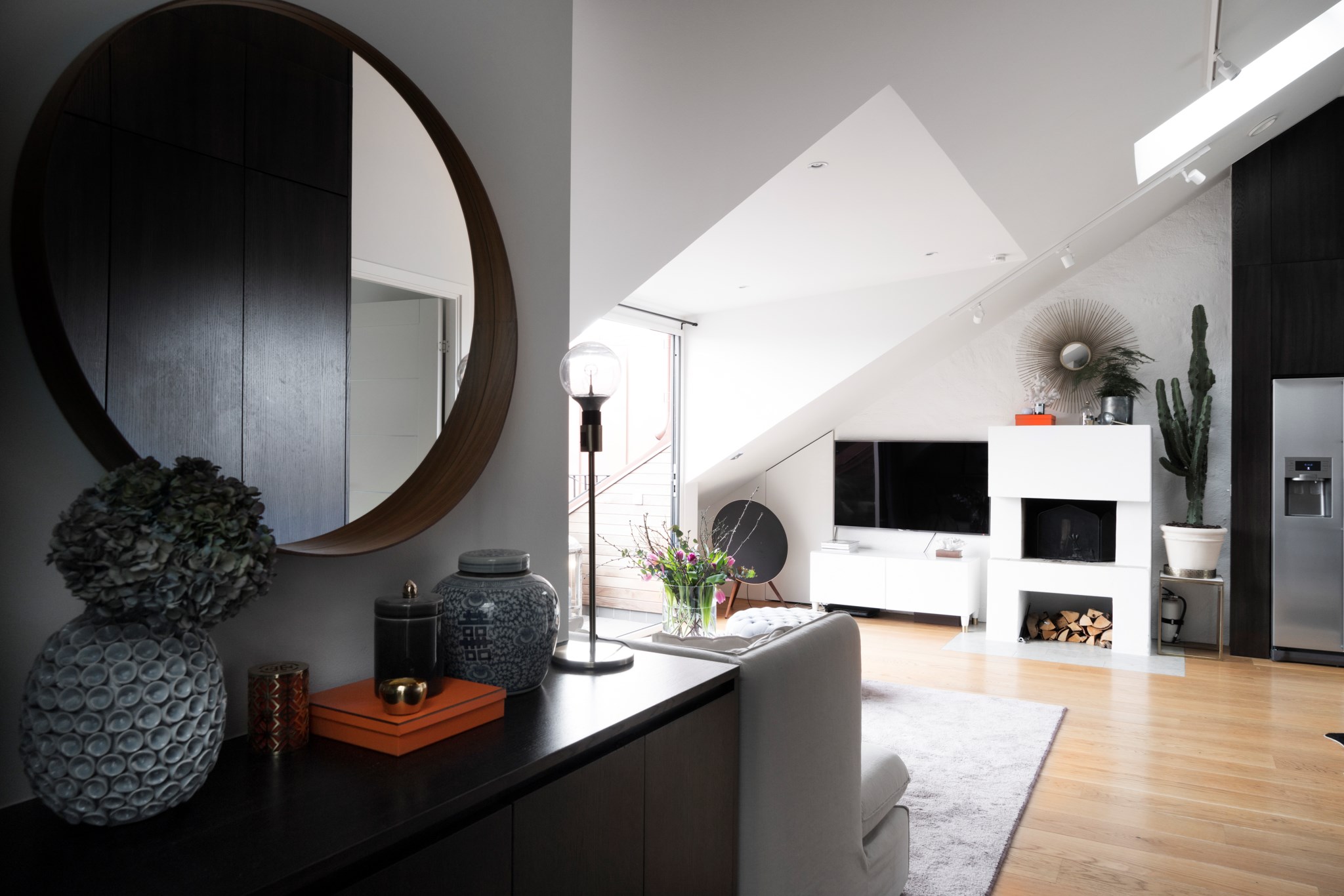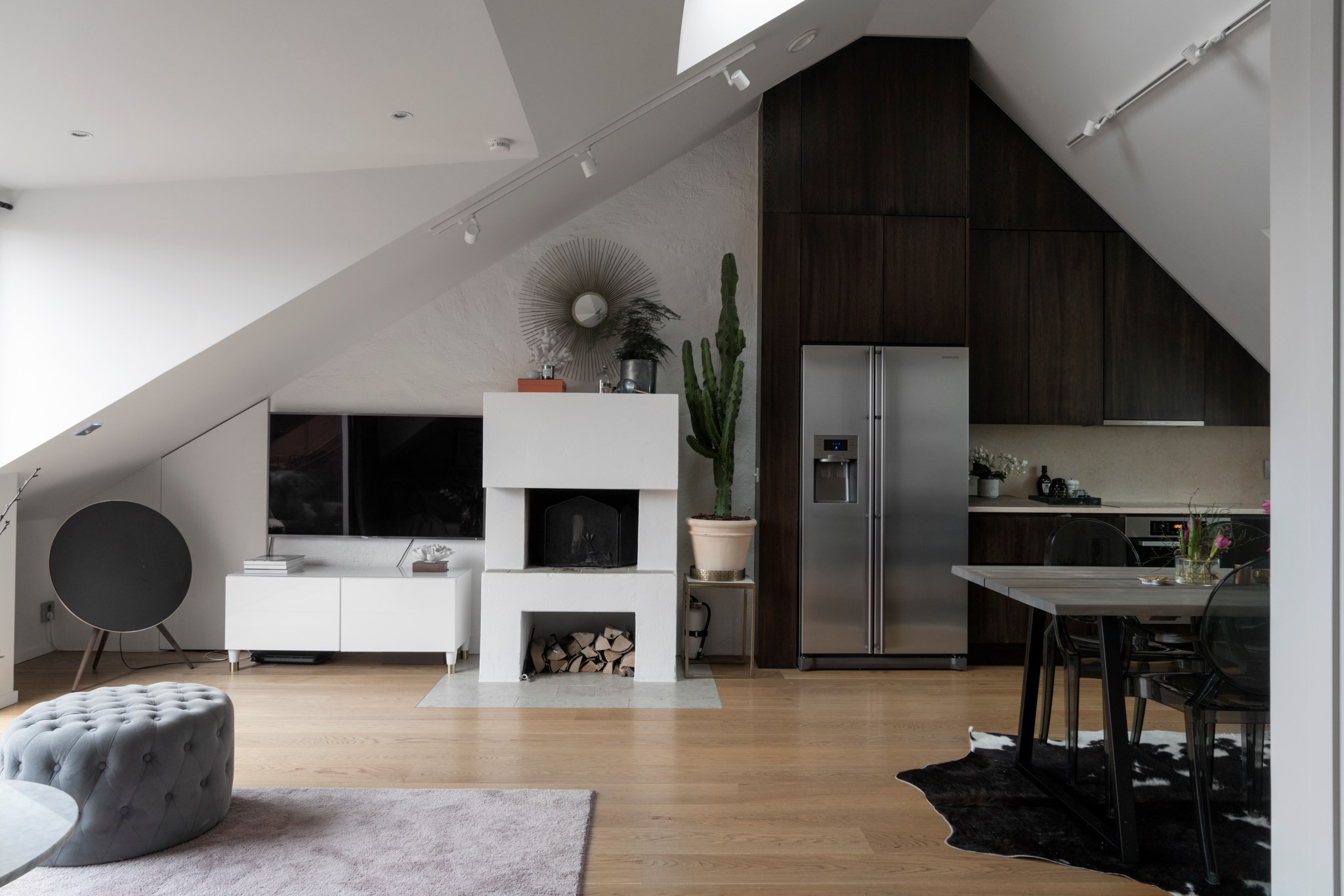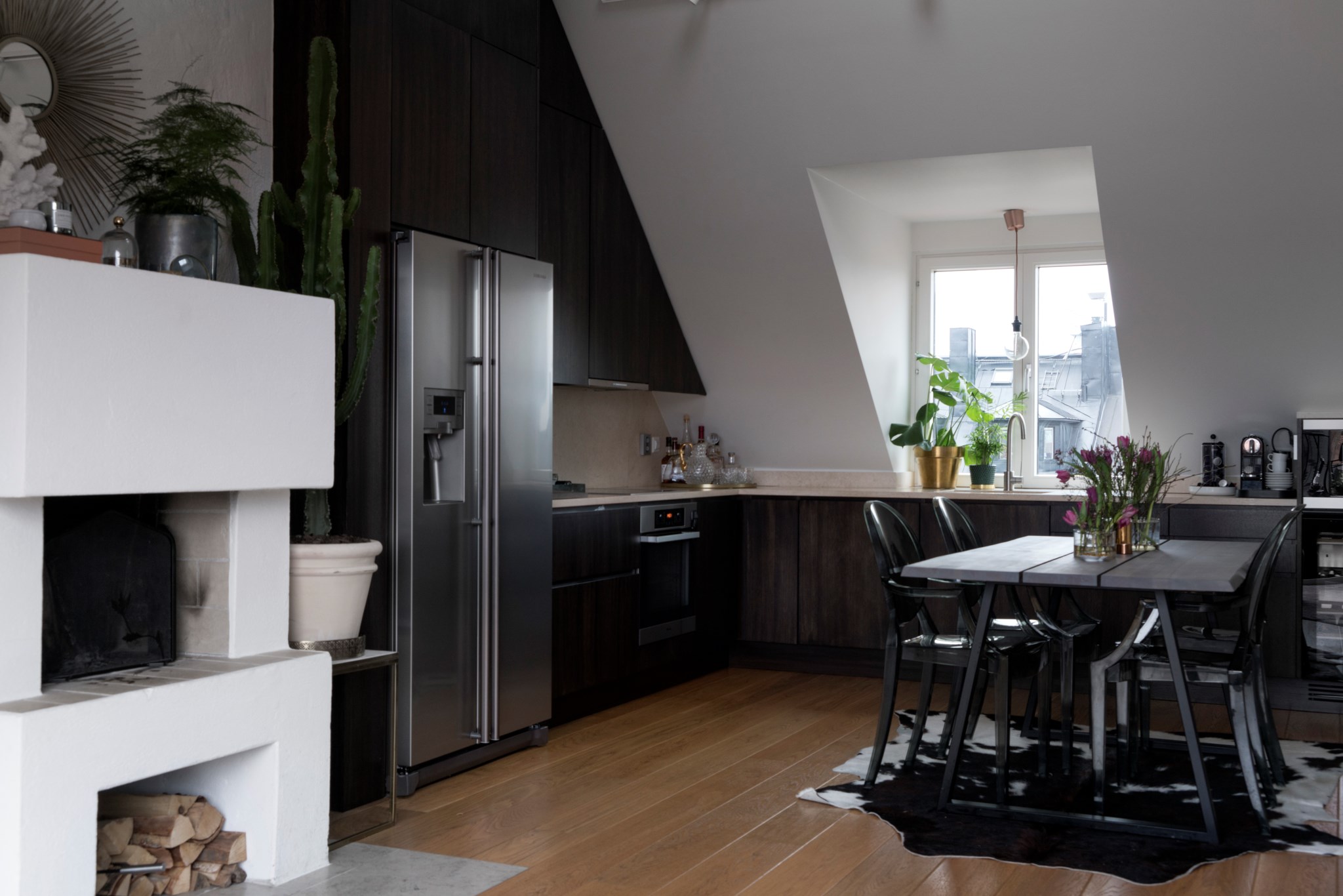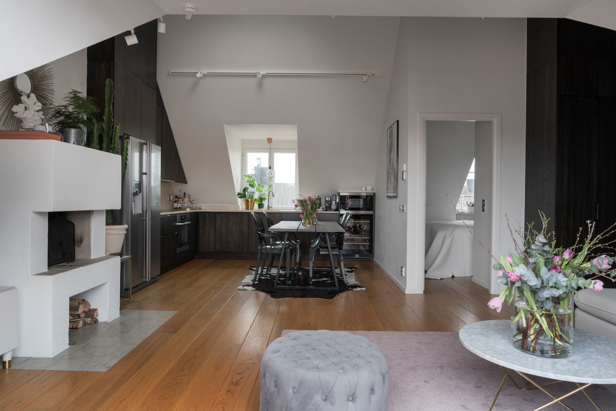 Välkommen till denna tilltalande och exklusiva vindsvåning med genomgående planlösning, terrass och öppen spis. Lägenheten har en stilren interiör med mörka träslag, ljusa väggar, kalksten och vacker massiv ekparkett. Dessutom stora glaspartier, golvbelysning, platsbyggd inredning och gott om förvaring. Utmärkt läge i Vasastan med närhet till många välbesökta restauranger, caféer, bagerier och matbutiker.