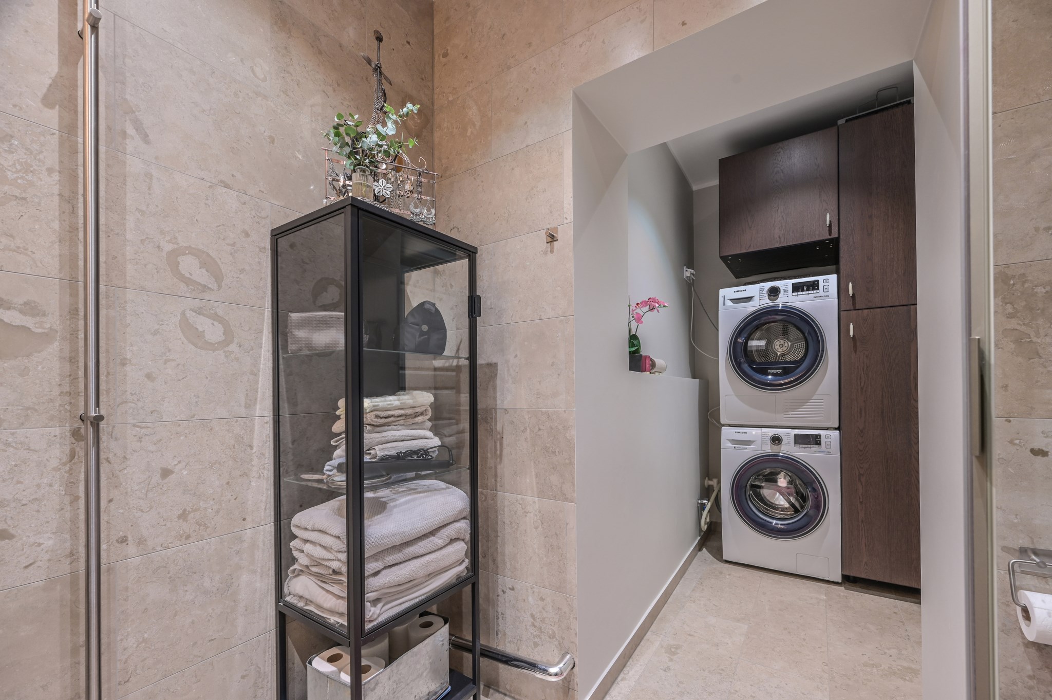 Tvättstuga i källaren, nås via källargång eller via ingång på Nortullsgatan 17. Innergård med utemöbler på sommaren samt en takterrass med utsikt över Vasastan.
