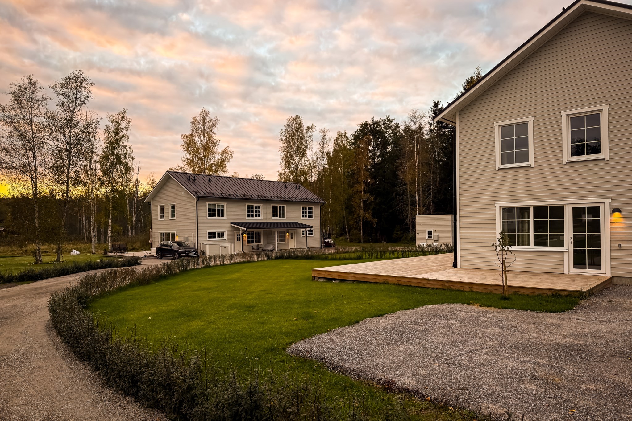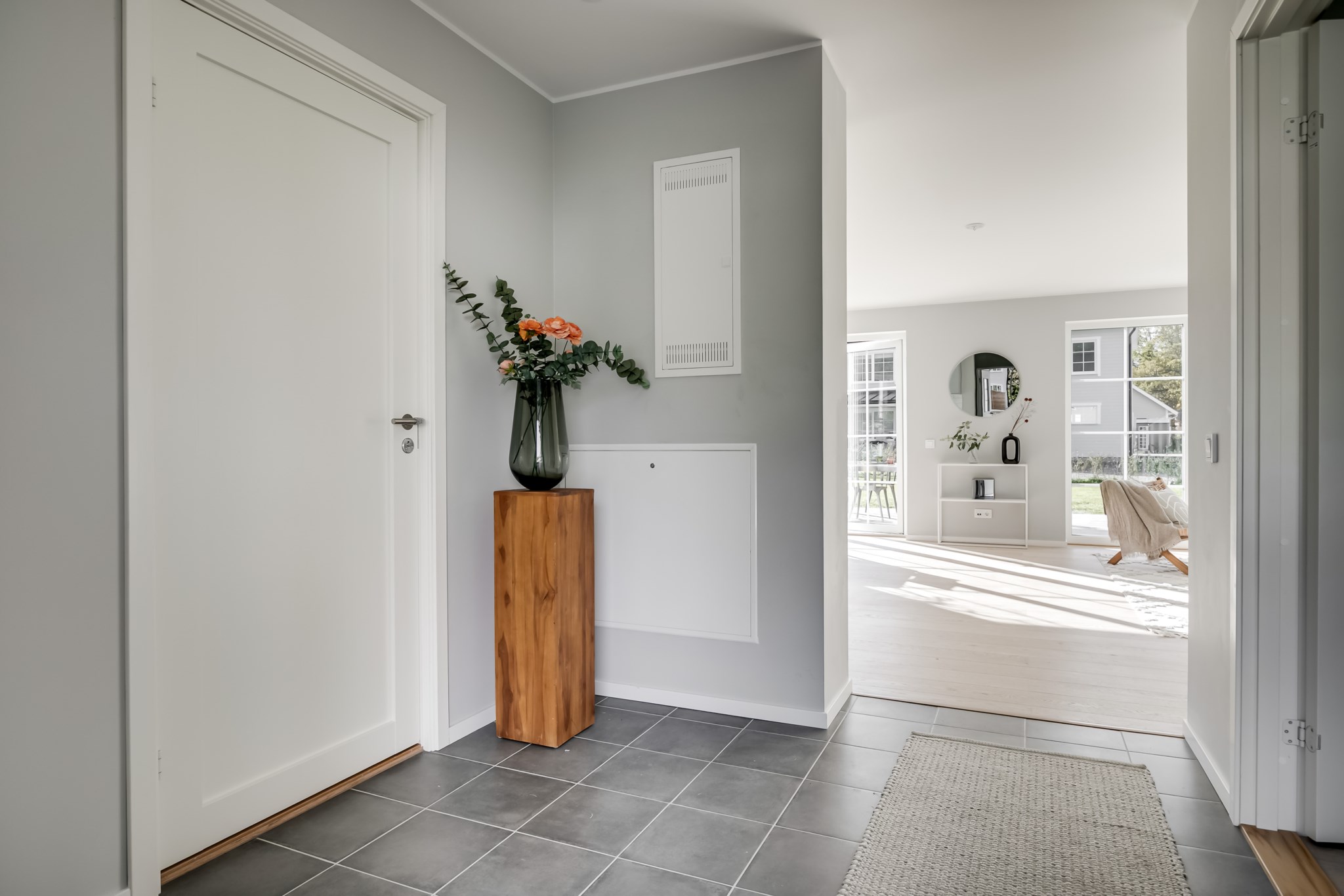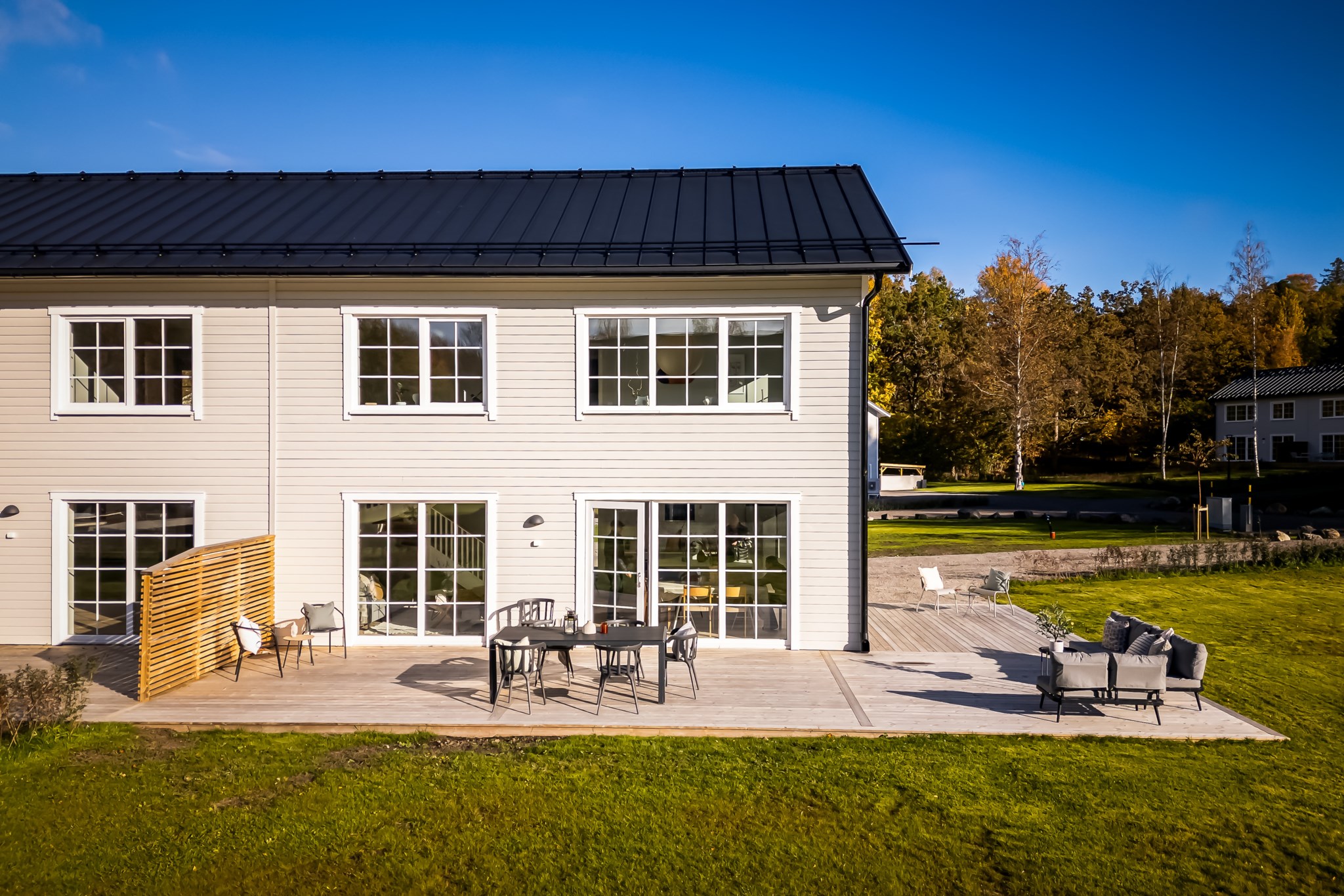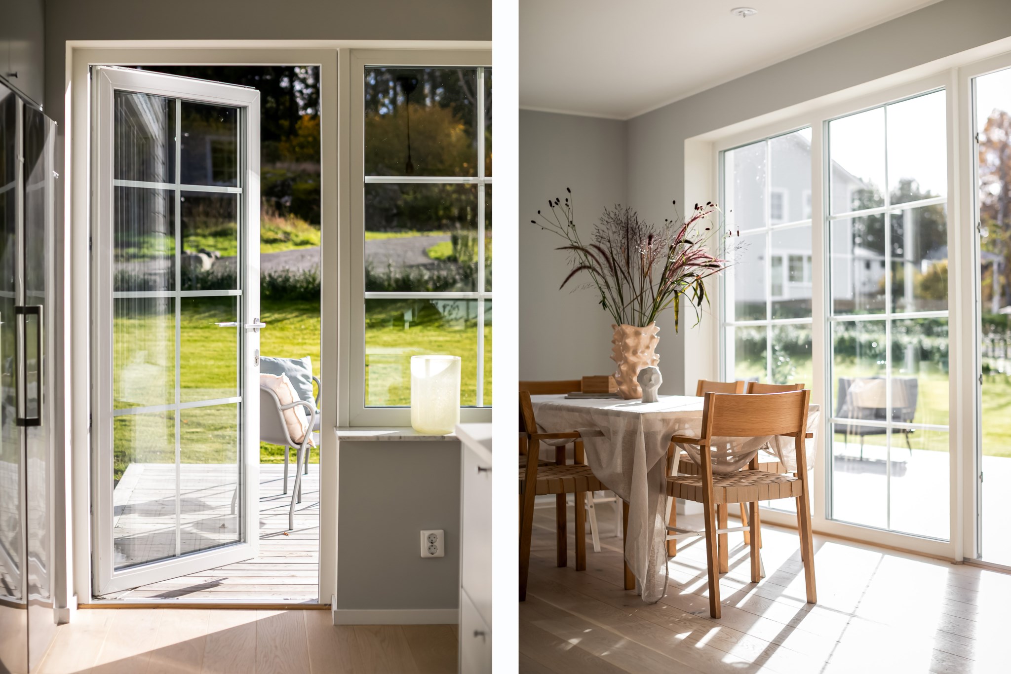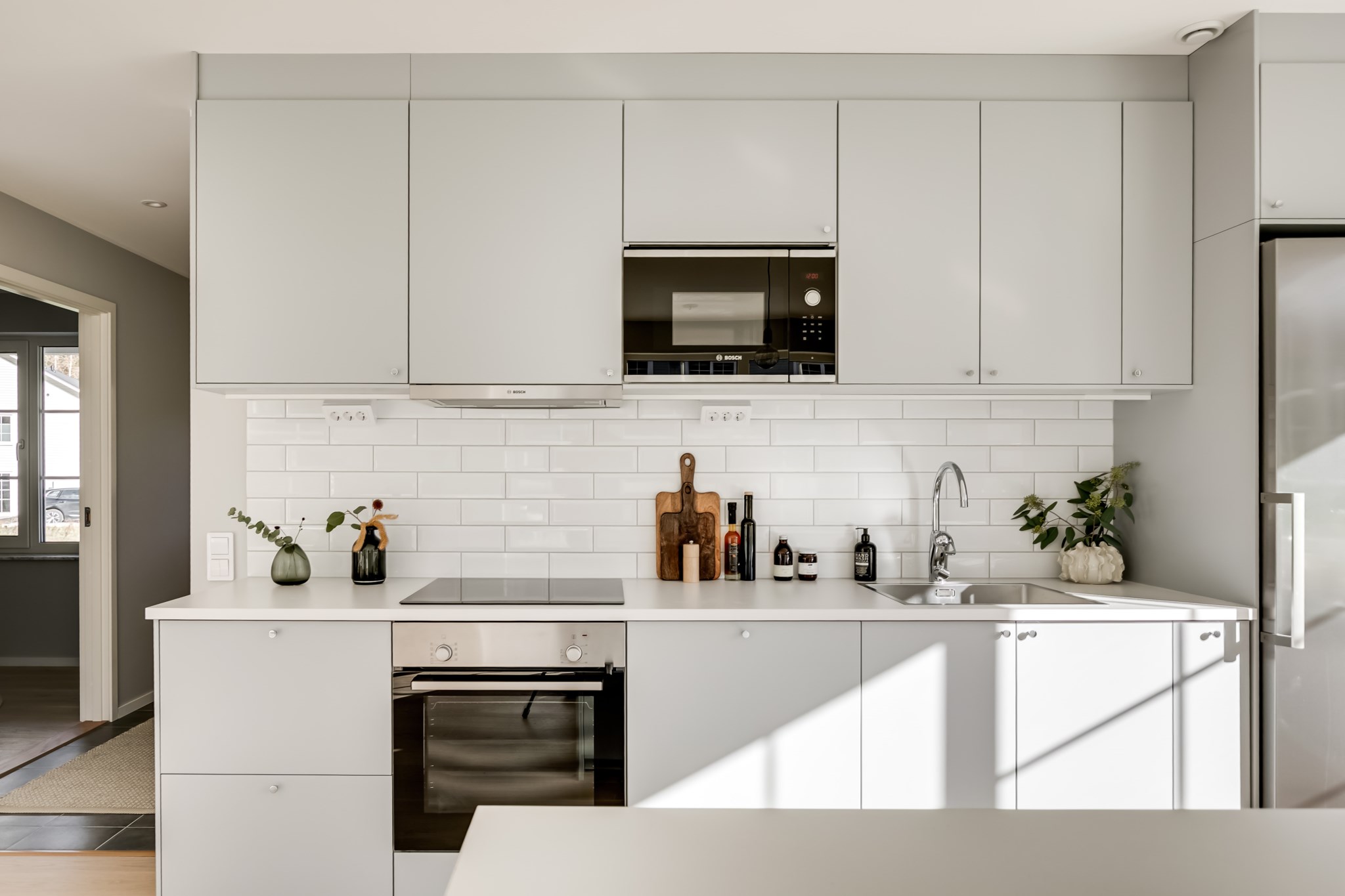 På entréplan välkomnas du av stor sällskapsyta med vardagsrum och kök i öppen planlösning.