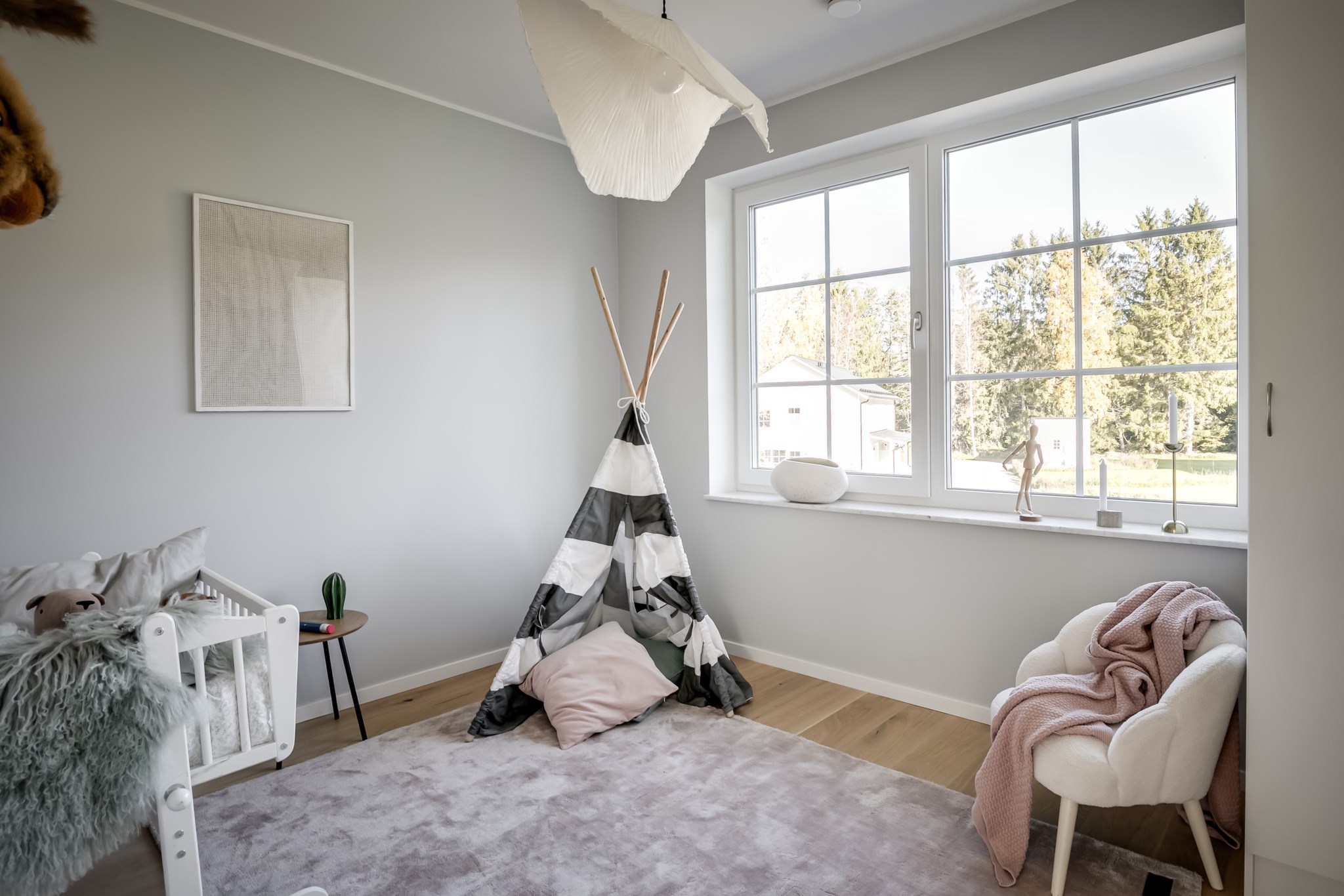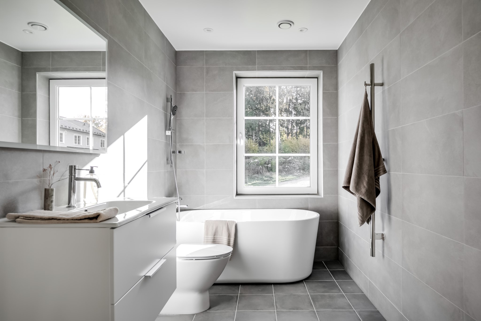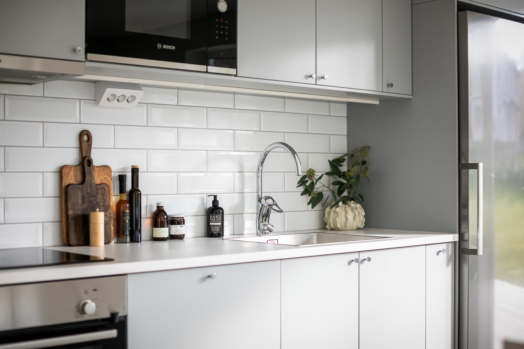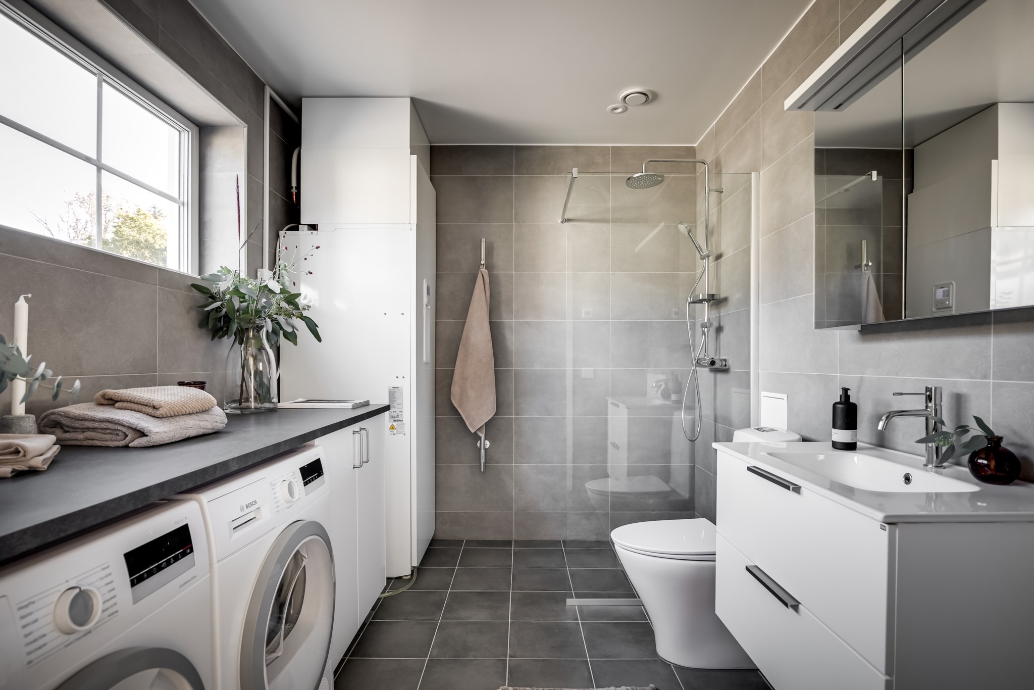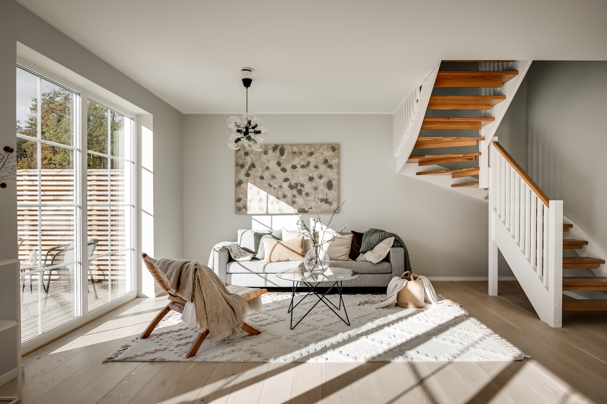 På entréplan välkomnas du av stor sällskapsyta med vardagsrum och kök i öppen planlösning.